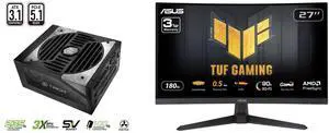 ASRock TC-1300T 1300 W Power Supply ASUS TUF Gaming 27" QHD 2K 1440P 180Hz with AMD FreeSync, 0.5ms, 1500R, Extreme Low Motion Blur Curved Gaming Computer Monitor VG27WQ3B
