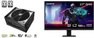 ASRock TC-1300T 1300 W Power Supply GIGABYTE 27" QHD 2K 1440P 180hz IPS with AMD FreeSync Premium 1ms HDR ready Gaming Computer Monitor GS27QA