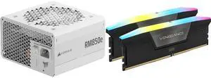 CORSAIR RM850e (2025) Fully Modular Low-Noise ATX Power Supply with 12V-2x6 Cable – ATX 3.1 & PCIe 5.1 Compliant, Cybenetics Gold Efficiency, 105°C-Rated Capacitors, Modern Standby Mode – White CORSAIR Vengeance RGB 32GB (2 x 16GB) 288-Pin