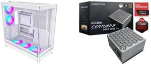 MONTECH HS02 PRO, ATX Mid-Tower PC Case, Gaming PC, High-Airflow, Reversible Layout, Sturdy Curved Tempered Glass Front Panel, 5x ARGB PWM Fan Pre-Installed, Sink-in Design, Toolless Panels, White, US MONTECH CENTURY II - 1050W High-End ATX - $239.80