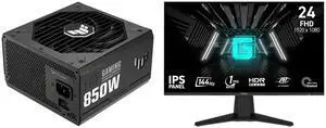 ASUS TUF Gaming 850W Gold (850 Watt, ATX 3.0 Compatible, Fully Modular Power Supply, 80+ Gold, Military-grade Components, Dual Ball Bearing, Axial-tech Fan, PCB Coating) MSI 24" (23.8" viewable) Full HD 144Hz IPS with Adaptive-Sync 1ms HDR
