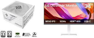 ASRock SL-850GW Gold 850W Full Modular Power Supply MSI 34" UWQHD 2K 1440P 120Hz with Adaptive-Sync HDR Ready Built-in Speakers USB-C KVM Picture-in-Picture white Curved Computer Monitor with Height Adjustable, Swivel & Tilt Stand Modern MD