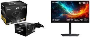 ASRock CL-650G 650 W Power Supply GIGABYTE 27" UHD 4K 240Hz with AMD FreeSync Premium Pro &, G-SYNC Compatible HDR400 USB-C KVM OLED Gaming Computer Monitor with Height adjustable, pivot, tilt and swivel stand MO27U2