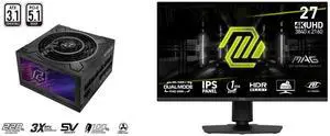 ASUS TUF Gaming 1000W Gold (1000 Watt, ATX 3.0 Compatible Fully Modular Power Supply, 80+ Gold Certified, Military-grade Components, Dual Ball Bearing, Axial-tech Fan, PCB Coating) MSI 27" Dual Mode UHD 4K 144Hz Full HD 288Hz IPS with Adapt