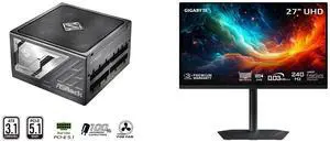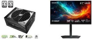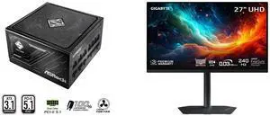 ASRock PG-1000G 1000W Power Supply GIGABYTE 27" UHD 4K 240Hz with AMD FreeSync Premium Pro &, G-SYNC Compatible HDR400 USB-C KVM OLED Gaming Computer Monitor with Height adjustable, pivot, tilt and swivel stand MO27U2