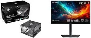 ASRock SL-1000G 1000W Power Supply GIGABYTE 27" UHD 4K 240Hz with AMD FreeSync Premium Pro &, G-SYNC Compatible HDR400 USB-C KVM OLED Gaming Computer Monitor with Height adjustable, pivot, tilt and swivel stand MO27U2