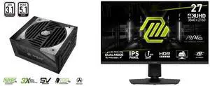 ASRock Phantom Gaming PG-850G 850W 80 PLUS GOLD & Cybenetics PLATINUM Full Modular Power Supply, ATX3.1 & PCIe5.1 Ready with Dual Color 12V-2x6 Cable, 10 Years Warranty MSI 27" Dual Mode UHD 4K 144Hz Full HD 288Hz IPS with Adaptive-Sync 1ms