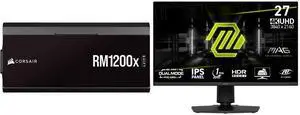 CORSAIR RMx Shift Series RM1200x Shift Fully Modular 80PLUS Gold ATX Power Supply MSI 27" Dual Mode UHD 4K 144Hz Full HD 288Hz IPS with Adaptive-Sync 1ms HDR400 Ai Crosshair Gaming Computer Monitor with Height Adjustable, Swivel, Pivot & Ti