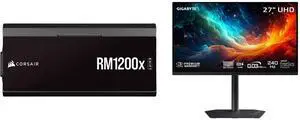 CORSAIR RMx Shift Series RM1200x Shift Fully Modular 80PLUS Gold ATX Power Supply GIGABYTE 27" UHD 4K 240Hz with AMD FreeSync Premium Pro &, G-SYNC Compatible HDR400 USB-C KVM OLED Gaming Computer Monitor with Height adjustable, pivot, tilt