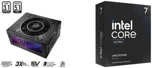 ASRock Phantom Gaming PG-750G 750W 80 PLUS GOLD & Cybenetics PLATINUM Full Modular Power Supply, ATX3.1 & PCIe5.1 Ready with Dual Color 12V-2x6 Cable, 10 Years Warranty Intel Core Ultra 7 265KF, Arrow Lake 20-Core (8P+12E), LGA 1851, 125W