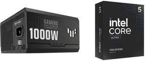ASUS TUF Gaming 1000W Gold (1000 Watt, ATX 3.0 Compatible Fully Modular Power Supply, 80+ Gold Certified, Military-grade Components, Dual Ball Bearing, Axial-tech Fan, PCB Coating) Intel Core Ultra 5 245K, Arrow Lake 14-Core (6P+8E), LGA 18