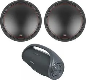 Audiosavings Bundle: (2) MTX 5515-22 15" 800 Watt Peak/400 Watt RMS DVC 2-ohm Car Audio Subwoofer Bundle with (1) Rockville Canon-XXL Huge Portable Bluetooth Speaker (3 Items)