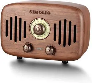 SIMOLIO Vintage Radio Retro Bluetooth Speakers, Loud and Powerful 2x8W Ultimate Stereo Sound, Nature Black Walnut Wooden Speaker with FM Radio & AUX, Bluetooth CSR Chip, HD Sound and Bass, Gift Ideas