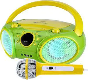 SingingWood NP030AB-YG Portable Karaoke System, Portable CD Player Boombox with Bluetooth for Home AM FM Stereo Radio, Headphone Jack, Portable Karaoke Supported AC or Battery Powered - Green