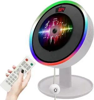 HOTT C229 Desktop Portable CD Player with Bluetooth 5.3,Built-in Speaker Hi-Fi Sound 8-14H Battery,Remote,RGB Light,Type-C Charging Play CDs, MP3, USB, AUX,TF Card (Grey)