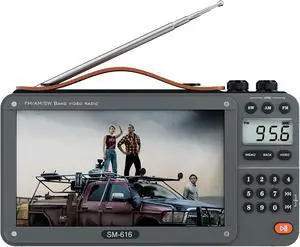 720P 7Inch Screen AM FM Movie Video Radio with Bluetooth Speaker, Rechargeable Digital Shortwave MP3 MP4 Player Radio, Support USB/Micro SD Card, Loud Speaker and Headphone Jack (NO TV)