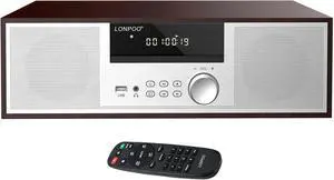 LONPOO Stereo Shelf System for Home, Vintage CD Player 40W RMS Micro Mini System with Remote Control, Bluetooth, FM Radio, USB MP3 Playback & Aux-in,Silver