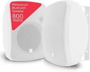 Pyle Outdoor Bluetooth Wireless Speaker System-2-way Active/Passive Pair - 6.5in, 800Watt Peak Power,Weatherproof,Wall/Ceiling Mounted Speakers w/ Metal Grill, Universal Mount, Indoor/Outdoor-White