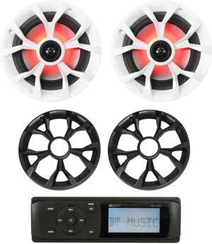 MB Quart MDR2.0 1-Din Marine/Boat Bluetooth/USB Receiver+(2) 6.5" LED Speakers