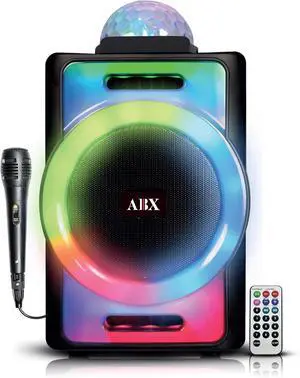 AudioBox ABX-890R 8" Portable Party Bluetooth Speaker with 360° LED Disco Lights, Wired Microphone, USB, AUX & WaveSync Technology (TWS)