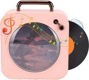 Jiawu Retro Bluetooth Speaker with RGB Light, Portable Bluetooth Speaker, Auto Rotating Record Stereo Vintage Wireless Supports Memory Card U Disk AUX Input (Pink)