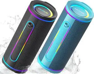 MLOVE E80 Portable Speakers Bluetooth Wireless with IPX7 Waterproof, Led Lights, Aux Input, Micro SD Card Slot, TWS, Bass Boost - Black & Blue