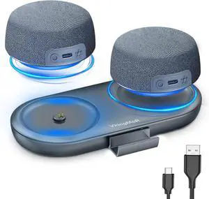 Dual Bluetooth Speaker Set with Magnetic Base & Phone Stand - TWS Stereo Sound, 10H Playtime, 3H with RGB Music Lights On- Bluetooth Wireless Speaker for Home Theater, Outdoor,TV Watching, Multi Room