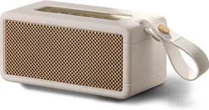 AT&T Essentials Retro 40W Bluetooth Speaker, IPX6 Waterproof, Bluetooth 5.3, LED Light Modes, Bass & Treble Control, 12H Battery, USB-C Charging, Outdoor & Indoor Use, Home Audio System - Cream