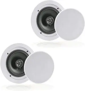 Pyle 6.5 Pair Bluetooth Flush Mount In-wall In-ceiling 2-Way Speaker System Quick Connections Changeable Round/Square Grill Polypropylene Cone & Polymer Tweeter Stereo Sound 150 Watt (PDICBT652RD)