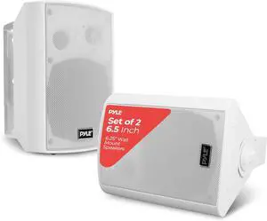 Pyle 6.5 Inch Wall Mount Waterproof Speaker System for Indoor or Outdoor Wireless Bluetooth Surround Sound System, White (2 Pack)