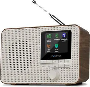 LEMEGA IR1 Portable WiFi Internet Radio,FM Digital Radio,Bluetooth Speaker,Dual Alarms Clock,Sleep Snooze Timer,40 Presets, Headphone-Output,Colour Display,Batteries or Mains Powered Walnut Finish