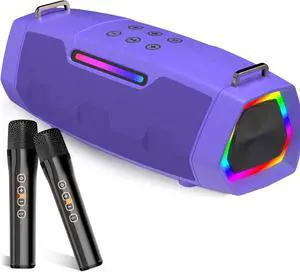 Karaoke Machine with 2 Wireless Microphones, Portable Bluetooth Speaker for Adults & Kids with RGB Light PA System Treble & Bass, Support TWS/USB/AUX/TF Card/REC, Supply for Home Party Outdoors