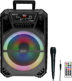 IQ Sound IQ-7912DJBT 12 Portable Bluetooth Speaker with TWS Pairing, LED Light Show, FM Radio, Remote & Mic, Built-in Handle & Tripod Socket, USB/Micro SD/AUX, Rechargeable Battery