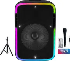 IQ Sound IQ-4715DJBT 15-inch Portable Bluetooth Speaker w/True Wireless Stereo, LED Light Show, FM Radio, Tripod, Mic, SD/USB/AUX/Mic Input, Rechargeable Battery, EQ Controls, 80W Power, Carry Handle