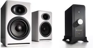Audioengine P4 White Passive Bookshelf Speakers with N22 100 Watt Bluetooth Desktop Amplifier