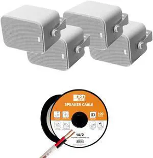 OSD Audio Outdoor Speaker Bundle, 2 Pair 4in White 80W Surface Mount Speakers + 100ft Speaker Cable, IP54 Weather Resistant, Ideal for Patio, Pool, Deck and Backyard Audio