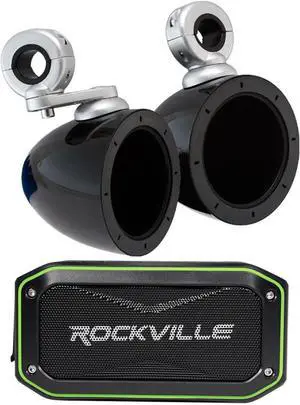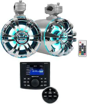 Rockville RGHR-ZA Bundle: 4-Zone Marine Gauge Hole Bluetooth Receiver, (1) Pair 6.5" Marine Wakeboard LED Tower Speakers, 150W/300W RMS, Waterproof, App Control, for UTV/Boat/Jeep, 3-Piece
