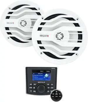 Rockville RGHR45 4 Zone Marine Bluetooth Receiver Bundle with 2 White MB Quart 6.5" Speakers (3 Items)