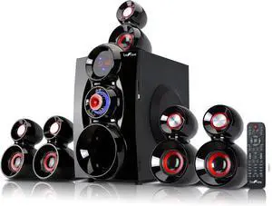 beFree Sound BFS-600, 5.1 Channel Surround Sound Bluetooth Speaker System, Red