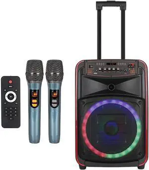 Outdoor 12" high-Power subwoofer Portable Bluetooth Speaker + Dual Wireless Microphone + LED Dazzling ColorLights Portable Trolley Mobile Sound Applicable Karaoke/Speech/Meeting/KTV (8 inch)