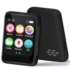 64GB Clip on MP3 Player with Bluetooth 5.3, Built-in Speaker, 2" HD Touchscreen, FM Radio, Voice Recorder, Portable Music Player for Running, Gym, Shuffle Audio Video, Up to 128GB MicroSD Card