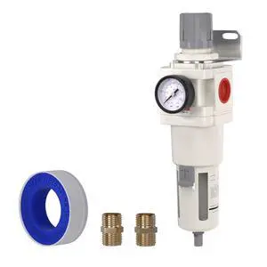 1"NPT Air Filter Regulator Combo Piggyback,5 Micron Brass Element, Semi-Auto Drain,Air Pressure Regulator AW5000-10,0-150 psi Gauge