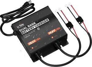 LiTime 2-Bank 12V 24V 10A Lithium Battery Charger, IP65 Waterproof AC DC Smart Charger for 12.8V/25.6V LiFePO4 Battery, with Adjustable Voltage & LED Indicator for Marine, Boat, and Trolling Motor