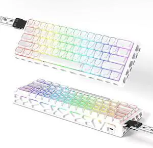 MK31 60% Wired Hot Swappable Mechanical Keyboard with Transparent Keycaps, Compact 66 Keys Chroma RGB Backlit Ergonomic Custom Gaming Keyboard Knob Control for PC/MAC