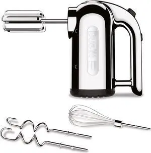 Dualit Hand Mixer - 300W- Strong Grip Handle - Attachments Included - Integral Plug Storage - 4 Speed Settings - Repairable gears - Flat Beaters, Dough Hooks, Balloon Whisk