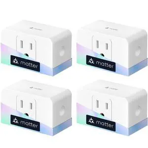 meross Matter Smart Plug, Energy Monitoring Smart Outlet, Wi-Fi Plug Work with Alexa, Apple HomeKit, Google with Schedule Timer, 15A/1800W, 100% Privacy Matter Smart Home, App & Voice Control 4 Pack