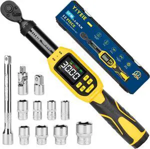 1/4" Digital Torque Wrench Set | 13.5-265 in-lb | ±1% Accuracy | Deep-Reach Head | Smart Alert Multi | 12PC Bike Torque Wrench Digital for MTB/Motorcycle, with Sockets & Adapters
