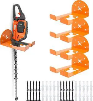 Garage Organizer Trimmer Rack, 4 Pack Weed Eater Hanger for Wall, Garden Power Tool Hanger Weed Whackers Holder Wall Mounted for Grass Trimmer, Hedge Trimmer, Garage Trimmer, Orange