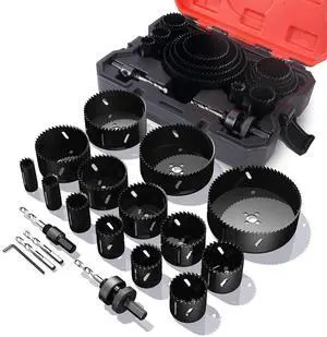 21-Piece Bi-Metal Hole Saw Kit, 3/44-3/4 (19121mm), Heavy-Duty Hole Saw Set with 14 HSS Blades, 2 Arbors, 4 Drill Bits, Hex Key & Storage Case for Wood, Drywall, PVC & Metal HTHOH25013