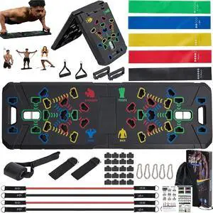 Portable Push Up Board Gym Kit 25-in-1, Foldable Push Up Station & Exercise Board Workout Set with 18 Accessories, Resistance Bands & Handles, Ankle Straps for Men, Women & Teens